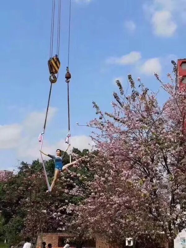 她们已经开始用吊车拍照了